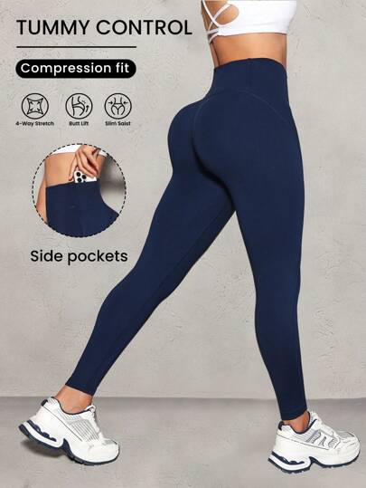 Lifespree 纯色高腰无缝紧身裤 - 藏蓝色 - 查看 1