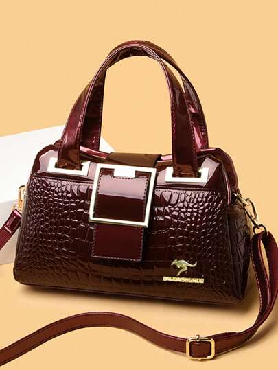 奢华设计师品牌斜挎包女士包2025新款鳄鱼纹皮革单肩包休闲托特包Bolsos - 酒紅色 - 查看 2
