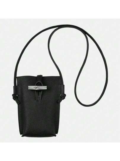 Lightweight And Versatile Cowhide Leather Series Made In France. Lychee Pattern Bamboo Bag, Shoulder Bag, Crossbody Bag, Unisex, Mobile Phone Bag, Coin Purse. - 黑色 - 查看 1