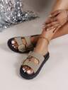 厚底软底凉鞋配纽扣装饰露趾平底拖鞋