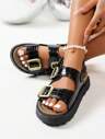 厚底软底凉鞋配纽扣装饰露趾平底拖鞋