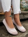 女士防滑條紋圖案一腳蹬優雅織物芭蕾舞鞋
