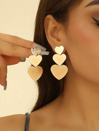 1 对时尚夸张三心形耳环 - 复古金属风格耳饰,送给女朋友的礼物 - 金黃色 - 查看 1