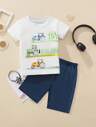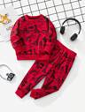 男童休闲长袖上衣和裤子套装,卡通恐龙夜光印花图案,时尚春夏