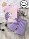 1 件幼儿/年轻女孩休闲卡通独角兽图案圆领短袖 T 恤,时尚春夏