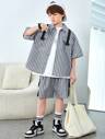 SHEIN 3 件套青少年男孩休闲条纹斗篷衬衫和短裤套装