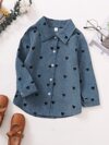 SHEIN Genkimix Kids 1 件女童翻领长袖纽扣条纹衬衫,正面绣有图案,秋季休闲上衣