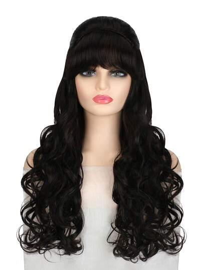 長款小波浪人造假髮帶劉海 - 黑色 - 查看 1