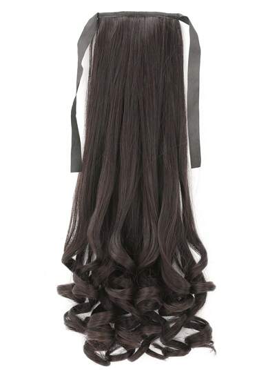 捆扎式馬尾扩展卷曲長波浪馬尾髮18英寸合成髮料女士用耐高溫黑棕色髮片 - 棕色 - 查看 4