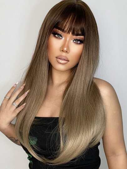 HAIRCUBE 長款直筒人造假髮帶劉海 - 棕色 - 查看 4
