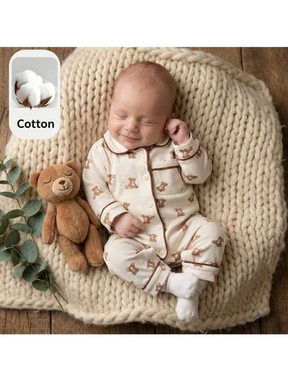 Loomiva 新生女宝宝卡通动物图案针织柔软领长袖连体衣 - 卡其色 - 查看 1