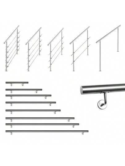 Lospitch Handrail Stainless Steel 80cm/100cm/120cm/150cm/160cm/180cm, Stair Railing Inside & Outside, Ø 42mm, With 0/2/3/4/5 Cross Braces For The Garden, Staircase Inside - 80公分 - 查看 9