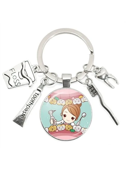 Love牙禮品鑰匙扣牙刷牙膏牙牙醫合金金屬鑰匙圈包吊墜迷人鑰匙圈支架 - 銀色 - 查看 1