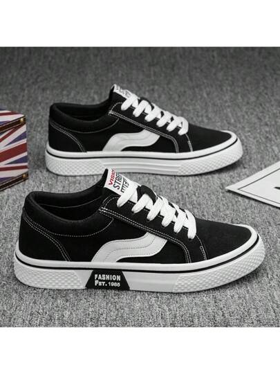 低帮帆布运动鞋,休闲一脚蹬平底鞋,时尚男士鞋 - 黑色 - 查看 1