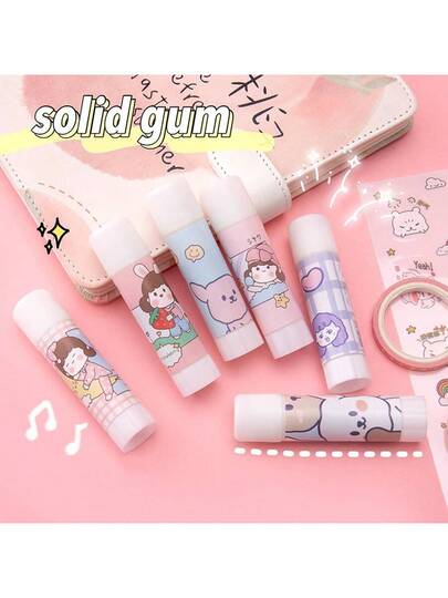 1 件随机 #卡通儿童高粘度坚固手工 DIY 固体胶水,适合学校毕业季、校园派对小礼物、学校用品、校园书籍书写修正文具、返校季、万圣节礼物 - 彩色 - 查看 6