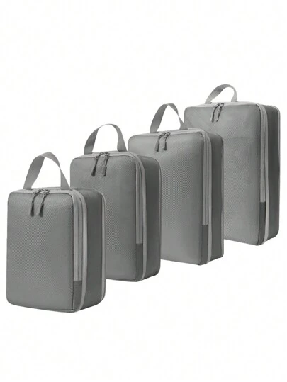 4 件式压缩储物袋,带鞋袋的旅行储物袋,可扩展且先进的储物空间 - 旅行箱必备品旅行背包旅行包行李箱旅行装备返校搬家袋收纳袋 - 灰色 - 查看 1
