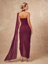 Lumalex 2025新款夏季海滩度假复活节波西米亚风沙滩户外婚礼季派对成人仪式返校派对优雅安哥拉红色网纱单肩褶皱装饰修身包臀女长裙,婚礼宾客礼服