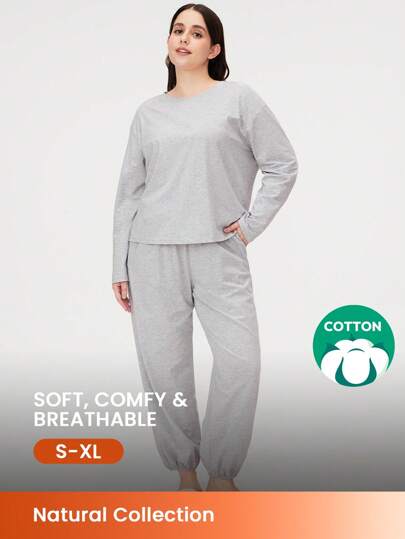 LUVLETTE 柔软棉质莫代尔休闲长款女士睡衣套装休闲套装 - 淺灰色 - 查看 1