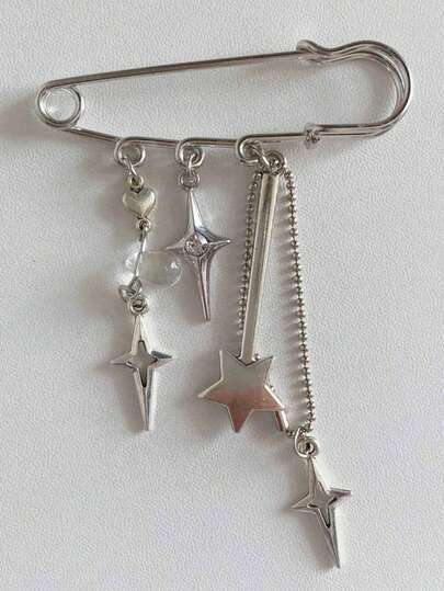 1 件女士新款简约时尚四角星胸针,独特个性化金属星星装饰别针,适用于包袋配饰 Y2K - 銀色 - 查看 1