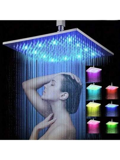 Luxury 6" Square Rain Shower Head High Flow Rainfall Showerhead 7 Color Changing, Bathroom Accessories