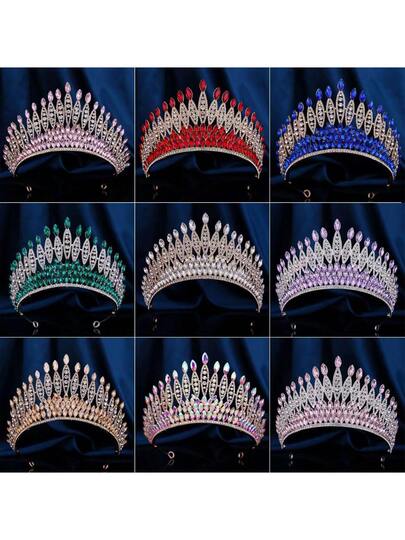 奢华新娘水晶水钻大皇冠,女士选美头饰,适合表演、派对、婚礼、宴会、情人节配饰 - 皇冠 - 查看 10