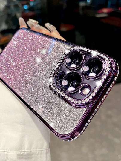 奢华电镀水钻闪光手机壳适用于 17 16E 15 14 13 12 11 X XS Max XR Pro Plus、Galaxy、Honor、OPPO、Redmi、A3 13C 14C、Note 10 11 12 13 14 Pro+、Infinix Smart8 9 - 紫色 - 查看 1