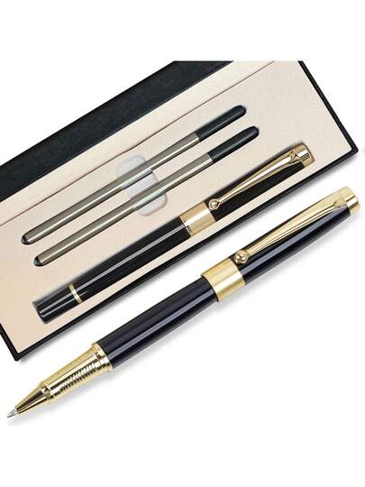 豪华礼盒装签字笔 - 高端烤漆不锈钢金属圆珠笔,配高级包装,是企业礼品的理想之选。这款豪华圆珠笔配有2支笔芯,适合男女商务办公人士使用。