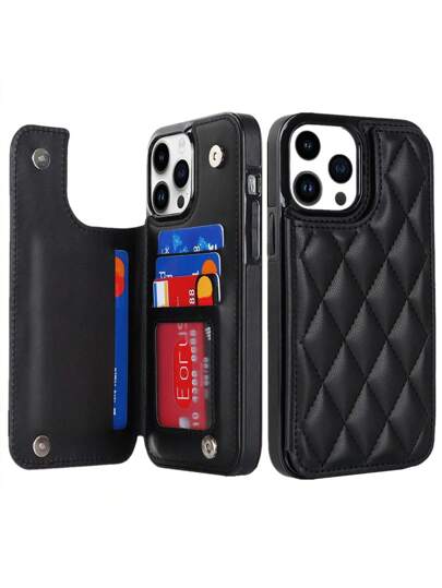 奢华皮革钱包式手机壳,带信用卡夹,适用于 Galaxy S25 S24 S23 S22 Ultra Plus A14 A15 卡槽,皮革磁扣支架,防震保护套,适用于 16e 16 15 14 13 12 11 Pro Max - 黑色 - 查看 1