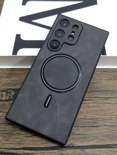 奢华哑光皮革磁吸无线充电手机壳,兼容三星 Galaxy S26 Ultra S24 S25 S23 S22 Ultra Plus S25 Edge,防震盔甲边框保护套 - 深灰色 - 查看 1