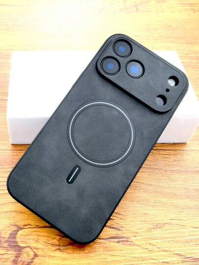 奢华哑光皮革手机壳,兼容 17 Pro Max、17 Pro、17、16、15、14、13、12 Pro Max Plus、16E、17 Air、11,支持磁吸式无线充电,带摄像头保护盖 - 深灰色 - 查看 1