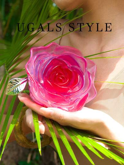奢华情人节花朵新娘婚礼钱包派对舞会手包盒手提包甜美女士晚宴流浪包斜挎包 - 粉色 - 查看 1