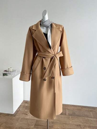Lyxana 优雅系带大衣,带侧袋,长袖翻领女式外套