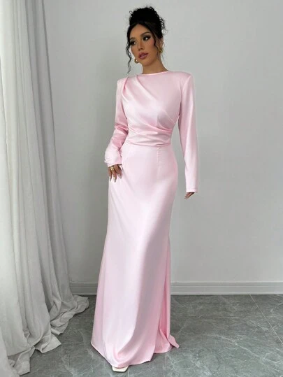 Lyxana 情人节单件缎面褶皱优雅浪漫女士连衣裙长款女装 - 粉色 - 查看 1