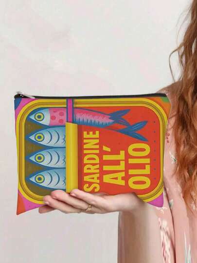 独特的红色帆布沙丁鱼罐头迷你化妆包 - 时尚拉链袋,旅行必需品,橄榄油设计,轻巧可洗,非常适合配件或铅笔盒,小化妆包,回到学校假期暑假学校用品包,适合学校旅行包,女士化妆包,适合旅行 - 彩色 - 查看 1