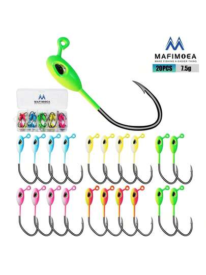 MAFIMOEA 20/25/30 件彩色鱼饵钩,鱼钩兼容各种蠕虫饵,适用于鲈鱼、鳟鱼、鲶鱼 - 淡水和咸水钓鱼 - 彩色 - 查看 10