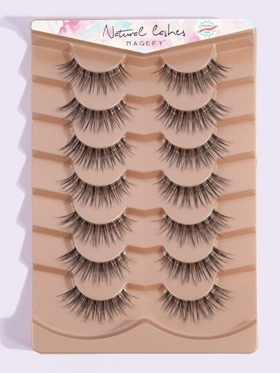 MAGEFY 7 对自然浓密假睫毛,透明茎,蓬松纤细,适合日常使用,漫画睫毛,旅行必备,假睫毛,睫毛,假睫毛 - 黑色 - 查看 4