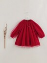 MARC&JANIE 年轻女孩宝宝优雅甜美荷叶边天鹅绒和网眼拼布连衣裙,开裆红色,春季