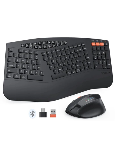 带腕托的无线分体式键盘、可充电无线键盘和鼠标组合、用于 PC 的多设备连接、人体工程学设计、优雅的商务礼物 - 黑色 - 查看 5