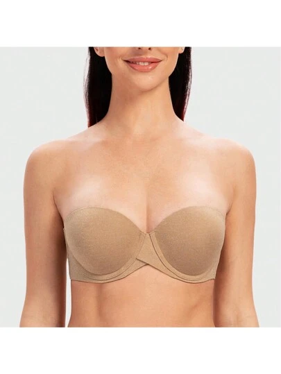 MELENECA Women's Underwire Smooth Multi-Way Uplift Padded Push Up Strapless Bra - 駝色 - 查看 1