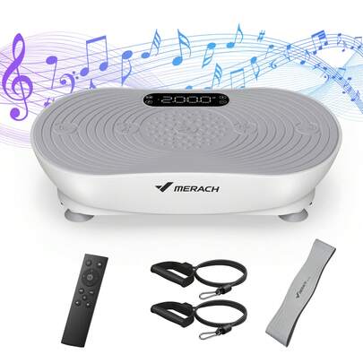 MERACH Vibration Plate Exercise Machine, Vibrating Platform For Lymphatic Drainage Weight Loss Muscle Activation, Full Body Home Exercise Equipment With LED Touch Screen Bluetooth Pull Cord
