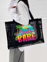 1 件网眼手提包轻便网眼淋浴包,带手柄购物袋,带缝合边缘,纯色,可折叠,适合游泳和健身,轻便,大容量,便携式网眼沙滩包,非常适合家庭旅行、度假
