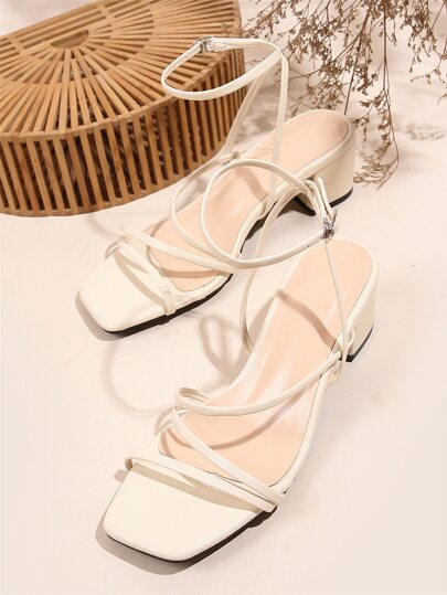 MINGDILIN 女士極簡粗跟踝帶優雅夏天高跟涼鞋 - 米色 - 查看 1