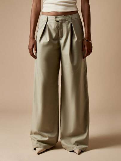 MISSGUIDED 褶皱阔腿裤专业办公室工作裤阔腿风格商务正装 - 綠色 - 查看 1