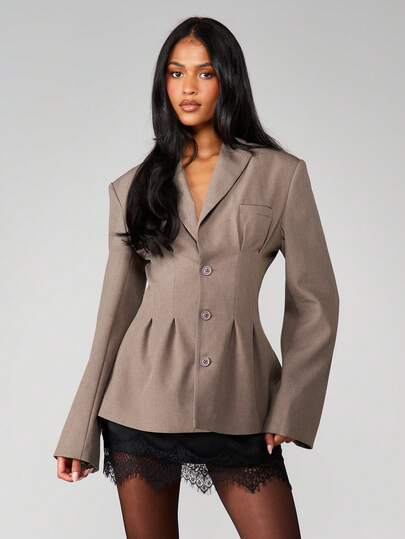 MISSGUIDED 挺括的荷叶边西装外套,纽扣闭合,腰部褶裥设计,适合办公室职业人士穿着。 - 灰色 - 查看 1