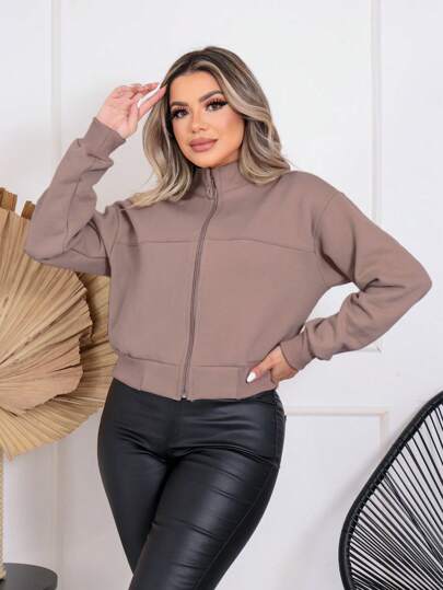 MONNEI Casual Single-Zip Cropped Sweatshirts