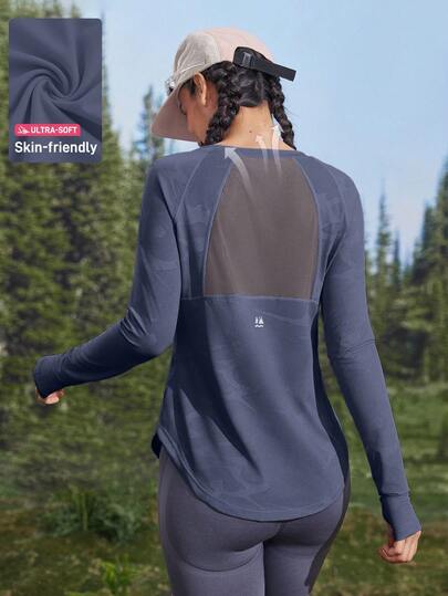 In My Nature 女士瑜伽普拉提运动健身跑步训练高弹力透气网眼拼接紫色无袖T恤户外徒步女装 - 藏蓝色 - 查看 8