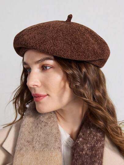 MOTF PREMIUM 棕色基本款贝雷帽,适合休闲通勤穿着 - 咖啡棕 - 查看 1