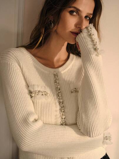 MOTF PREMIUM 仿珍珠饰边修身毛衣 - 白色 - 查看 1