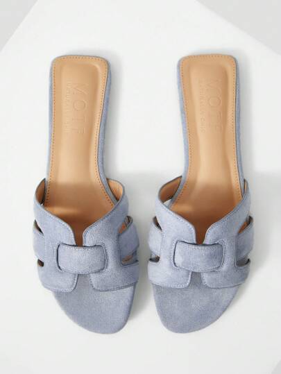 MOTF PREMIUM 轻质编织压纹穆勒平底凉鞋 - 藍色 - 查看 10