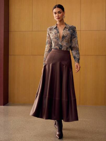 MOTF PREMIUM PU皮革A字拉链裙 - 咖啡棕 - 查看 1